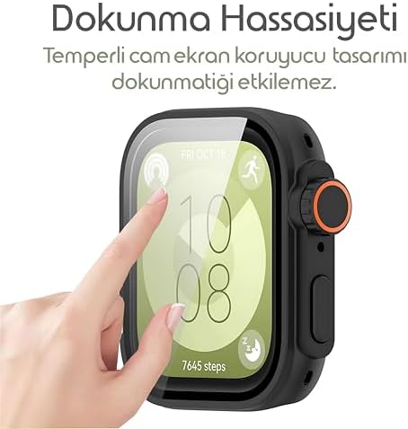 MÜKEMMEL UYUM➤ Sadece Fit 3 ile uyumludur. Kılıf, saatin işlevlerini sorunsuzca kullanmanızı sağlar. Takıp çıkarması pratiktir, şarj ve sensör erişimini engellemez. YENİ NESİL DÖNÜŞÜM➤ Saatinize modern ve yenilikçi bir görünüm kazandıran fit 3 koruyucu kılıf, yeni tarzıyla saatinizi üst segment bir görünüme kavuştururken, aynı zamanda ekstra fit 3 koruması sağlar. Dayanıklı sert malzemeden üretilen fit 3 koruyucu, darbelere karşı yüksek koruma sunarken fit 3 saatinize fazla hacim katmaz. kılıf İnce profiliyle günlük kullanımda rahatsızlık vermez. BÜTÜNLEŞİK EKRAN KORUYUCU➤ Dahili ekran koruyuculu tasarımı sayesinde, hem watch fit 3 camını hem de kasasını aynı anda korur. 'in entegre ekran koruyucu ve sert kasa çerçevesi sayesinde ekstra ürüne ihtiyaç duymadan tam koruma sağlar. YÜKSEK HASSASİYET VE NETLİK➤ Dokunmatik hassasiyeti ve ekranın netliğini %99 oranında korur. Fit 3 ekranıyla mükemmel uyum sağlayan fit3 ekran koruyucu, tüm işlemleri rahat ve kesintisiz şekilde yapmanıza olanak tanır. SU İLE TEMAS UYARISI➤ Kılıf su geçirmez değildir. Su ile temas ettiğinde, watch fit 3 koruyucu ile saat arasına sıvı sızabilir ve buğulanma oluşabilir. Böyle bir durumda, fit 3 kılıfı çıkarıp kurulayın ve hem kılıfın hem de fit 3 saatin tamamen kuru olduğundan emin olun. RONGEP STORE➤ WATCH FİT 3 ile uyumlu tüm aksesuarları keşfetmek için Store’u ziyaret edebilirsiniz. Lütfen unutmayın, siparişiniz yalnızca akıllı saat kılıfı içermektedir; görsellerde yer alan diğer ürünler dahil değildir. Herhangi bir sorunuzda size yardımcı olmaktan memnuniyet duyarız — 7/24 bizimle iletişime geçebilirsiniz. Fit 3 için Kasa Dönüştürücü Kılıf Yeni Nesil Görünüm Veren PC + Temperli Ekran Koruyuculu Dokunmatiği Etkilemeyen Sert Materyalli Kasa Koruyucu Fit 3 Kılıfı (Siyah)