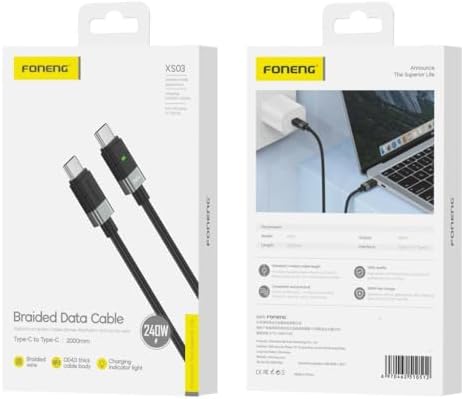 Zamandan Tasarruf Etmek İçin Hızlı Şarj 240W hızlı şarj, bekleme süresini azaltmanıza olanak tanır Akıllı çip, optimum gücü otomatik olarak sağlar Foneng Xs03 Serisi kablo, tüm USB-C özellikli cihazlar için uygundur Uzun dayanıklılık için sekiz iç bakır telli örgülü dış Foneng XS03 240W 200 cm PD Type-C Şarj Kablosu Siyah