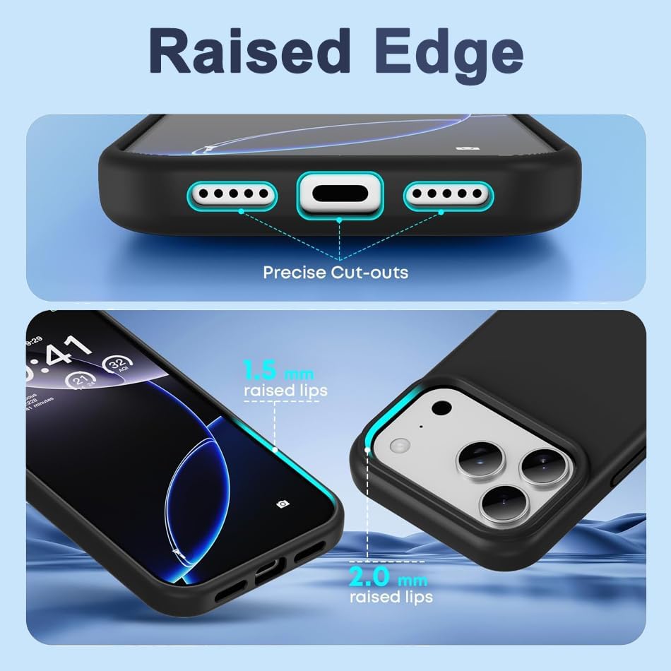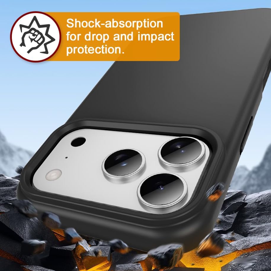 Darbe Emici Düzey Yüzey Kamera Koruma Kaymaz Dış Yüzey İç Kadife For 17 Pro ile uyumlu Esnek Silikon Kaymaz Yapı İç Kadife Yüzey Darbe Emici Siyah Telefon Kılıfı (Siyah, 17 Pro)