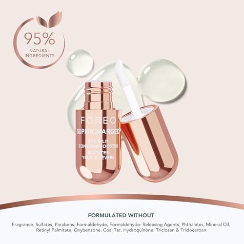 FOREO SUPERCHARGED Göz ve Dudak Serumu – Niasinamid, iletken jel – Yaşlanma karşıtı, dudak dolgunlaştırıcı ve şişlik giderici bakım – Seyahat boyu – 3 x 3.5 mL