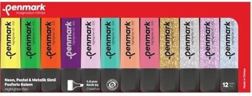 Rahat yazma deneyimi sunar Fosforlu Kalem 12'li Karışık Renk 4 Neon ve 4 Pastel ve 4 Simli