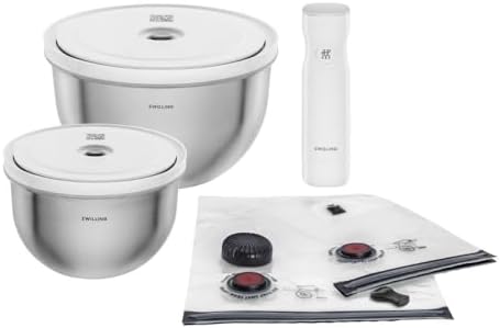 Yemek hazırlığı, pişirme, servis ve saklama için kullanım sunar Vakumla mühürlenen yiyecekler tazeliğini uzun süre korur Çift vakumlama teknolojisine sahip vakum kapaklar, kaseler bulaşık makinesinde yıkanabilir, dondurucuya ve mikrodalgaya uygundur, kapaksız olarak 180 °C'ye kadar fırına dayanıklıdır Fresh & Save Bowls Vakumlu Saklama Kabı Başlangıç Seti Paslanmaz, Çelik, M/L, 9 Parça