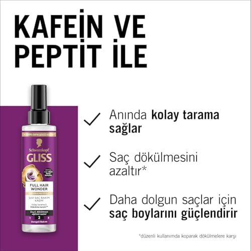 Kafein ve peptit içeriği saç derisini uyararak dökülmeleri azaltır ve tarama kolaylığı sağlar Dolgun görünen saçlar için saç boylarını güçlendirir Saçın kolay taranabilmesini sağlar Full Hair Wonder Sıvı Saç Kremi 200 ml