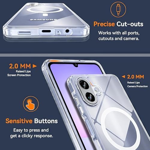 Galaxy A07 Manyetik Kılıf Seti, 9H Temperli Cam Ekran Koruyucu, MagSafe Uyumlu, Darbeye Dayanıklı Şeffaf Kapak,Düşme Koruması, EVINTO