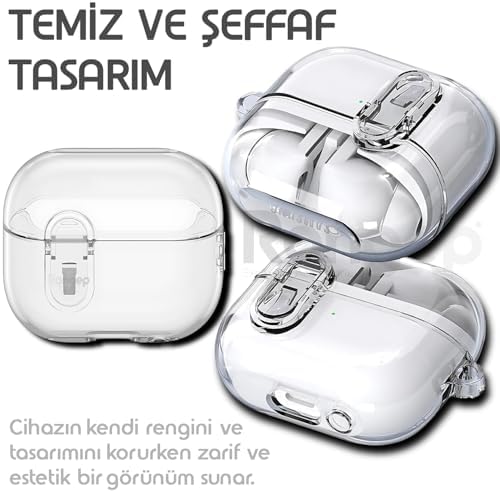 Galaxy Buds 3 Pro ve Buds 3 için Güvenlik Kilit Tasarımlı Şeffaf Kulaklık Kılıfı Darbeye Çizilmeye ve Sararmaya Karşı Dayanıklı Taşıma Askılı TPU Silikon Koruyucu (Şeffaf)