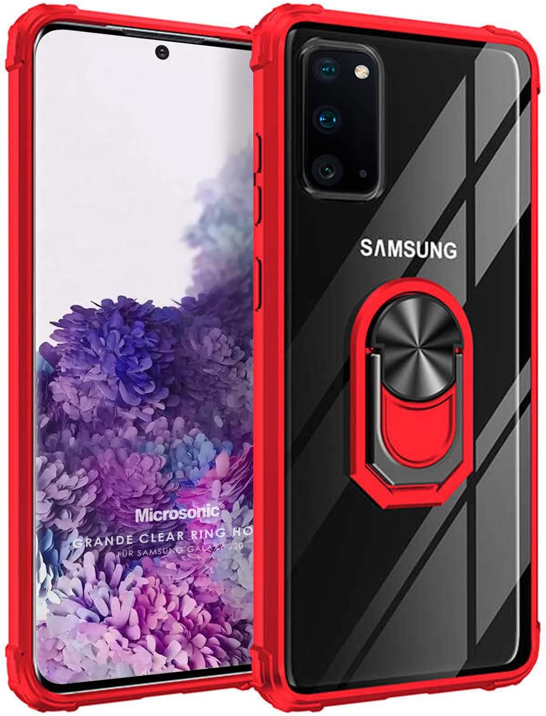 Galaxy S20 için Kılıf Grande Clear Ring Holder Kırmızı [Galaxy S20 ile Uyumlu Kılıf – Kırmızı]