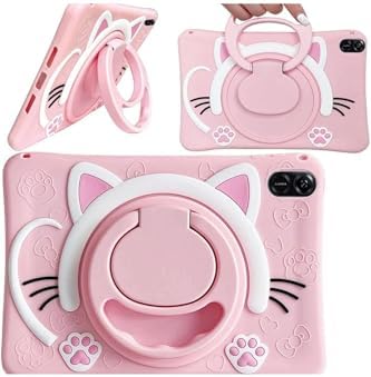 Tablet Kılıfı Galaxy Tab A9 Plus (11 inç) ile uyumlu Standlı Askılı Karakterli Çocuk Kılıfı Kedi Pembe