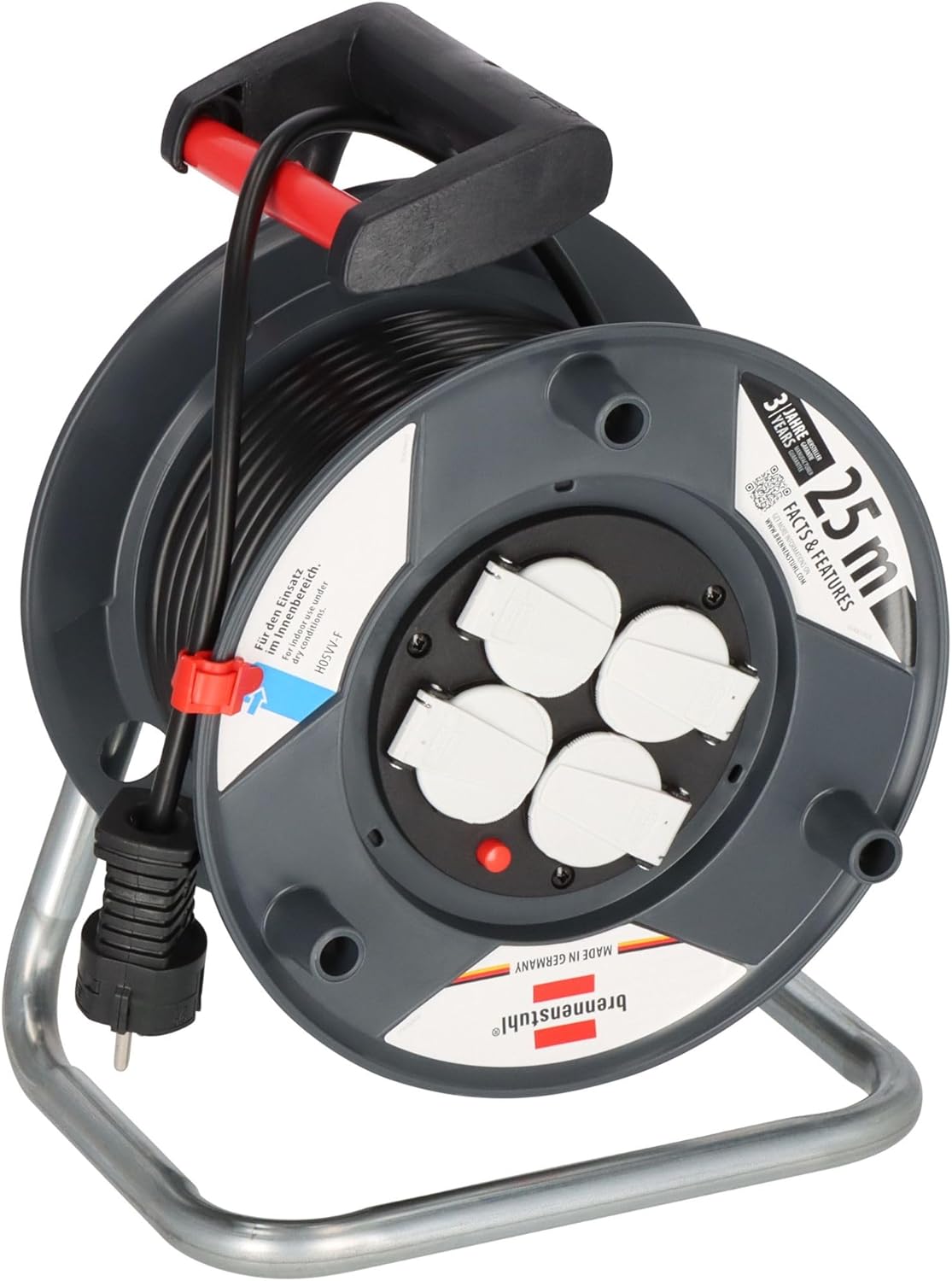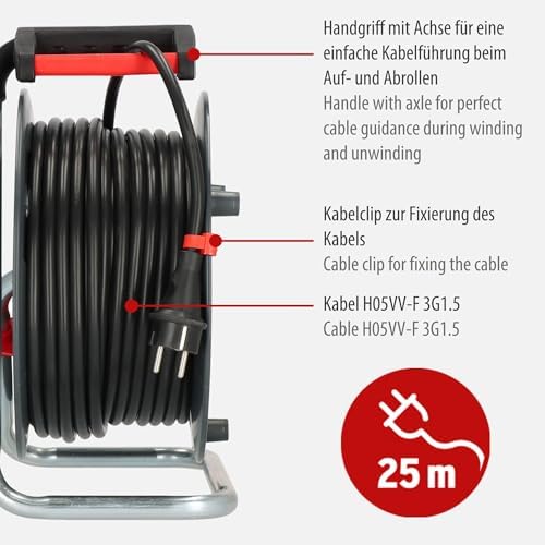 Garant E kablo makarası (25 m kablo, siyah, özel plastikten, iç mekanda kullanım için, Almanya'da üretilmiştir)