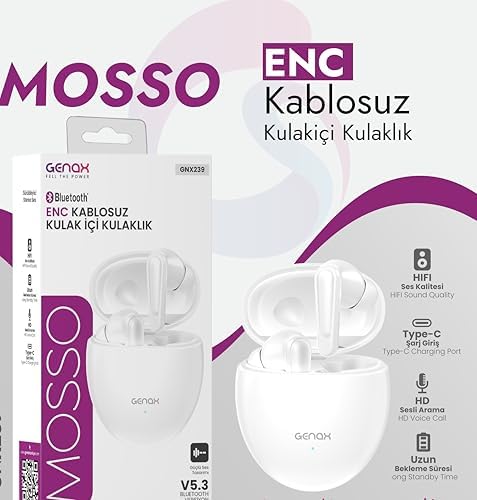 Genax Mosso ENC Bluetooth 5.3 Kulak İçi Kulaklık Genax Mosso ENC Bluetooth 5.3 Kulak İçi Kulaklık – Net Ses & Gürültü Azaltma
