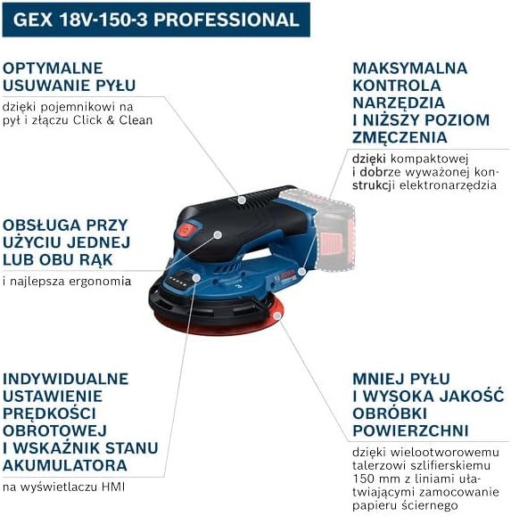 GEX 18V-150-3 Akülü Eksantrik Zımpara Makinesi