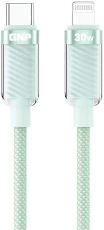 Hızlı şarj teknolojisi sayesinde cihazlarınızı daha kısa sürede şarj eder GNP Transparent TYPE-C To Lightning 1.2 Metre Yeşil