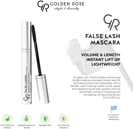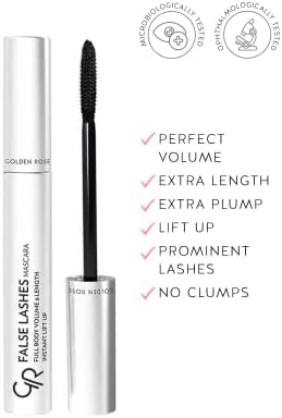 Kaliteli Golden Rose formülü Uzun ömürlü kullanım Kolay ve hızlı uygulama Dermatolojik olarak test edilmiştir Golden Rose False Lashes Mascara