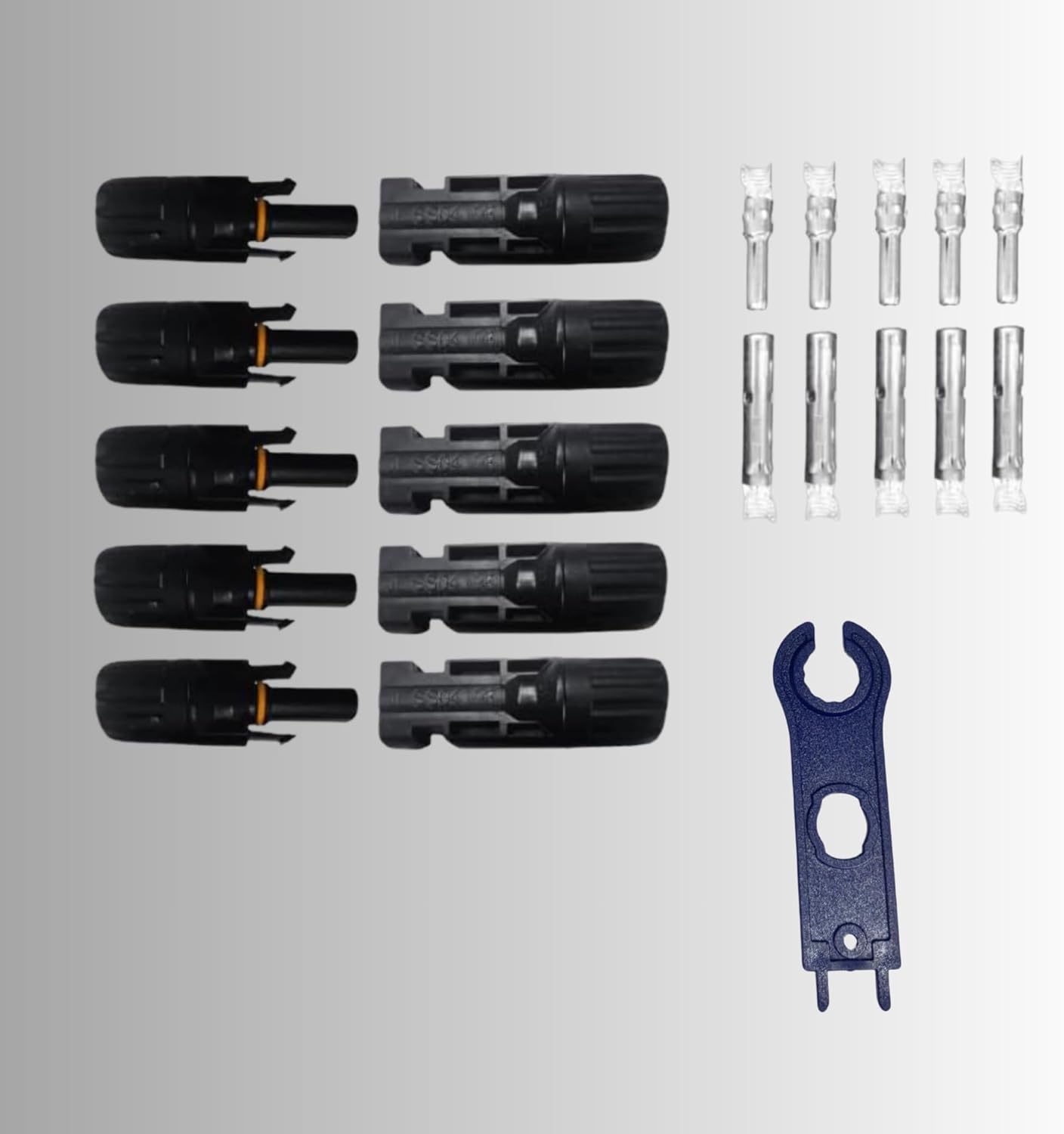 MC4 Uyumlu Konnektör Çifti: Güneş Paneli Bağlantısı için İdeal Seçim Kesintisiz Güç Kaynağı için Hava Koşullarına Dayanıklı Tasarım Sağlam bir IP67 su ve toz geçirmezlik derecesine sahip Uzun Ömürlü Güneş Enerjisi Bağlantıları için Güvenilir Güneş Enerjisi Kurulumları için Sorunsuz bir güneş enerjisi deneyimi için Güneş Paneli Konnektör Seti 1000V 30A, IP67, UL-94V0, CE; Beş çift konnektor seti ile bir adet plastik anahtar içerir. (5)