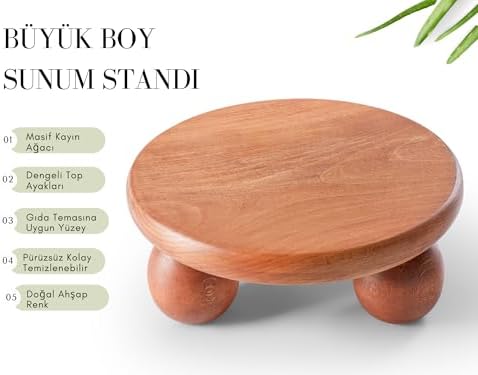 Halohope Büyük Boy El Yapımı Doğal Ahşap Sunum Standı – Top Ayaklı Şık Sunum Tahtası ve Tabağı, Sofra Servis Sunumluk, Dekoratif Ahşap Stand, %100 Dayanıklı ve Uzun Ömürlü El Yapımı Tasarım