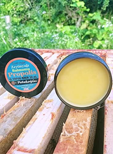 İçeriği tamamen doğal dır. zeytinyağı balmumu ve propolis dışında bir katkı maddesi yoktur. Ham Propolis Balmumu Zeytinyağı El Yapımı Doğal Onarıcı Krem 50 ML
