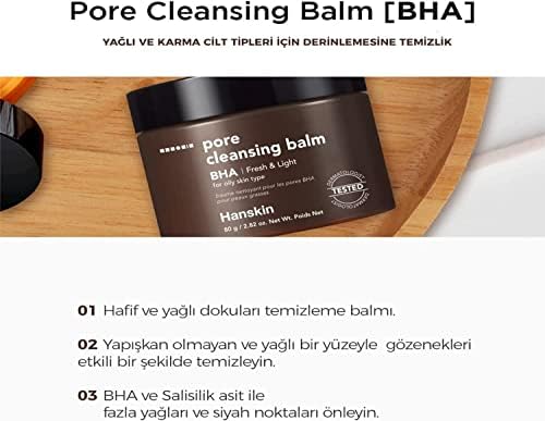 Makyaj temizleyici balzam Cilt dokusunu pürüssüzleştirir Gözenekleri temizler Cilt nemini geri kazandırır Cilt dokusunu dengeler Hanskin Pore Cleansing Balm BHA – Karma Ve Yağlı Ciltler için Gözenek Ve Makyaj Temizleme Balmı
