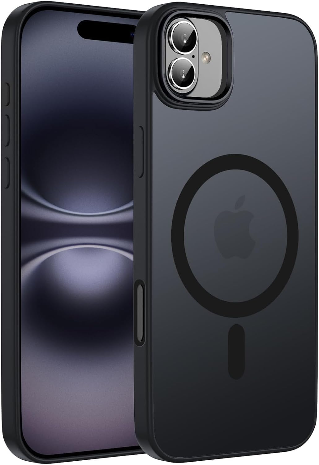 Happy 16 Plus Uyumlu Kılıf Kablosuz Şarj Özellikli Arka Tarafı Mat Şeffaf Kenarları Siyah Kılıf (Siyah, iphone_16_plus)
