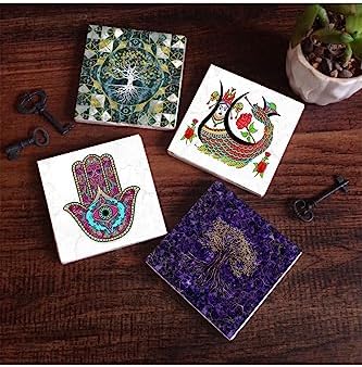 Hayat Ağacı, Fatma Ana Eli , Şahmeran Taş Bardak Altlığı Seti – 4 Parça – Dekoratif, Rustik Mutfak Aksesuarı, 10×10 cm, Kaydırmaz Tabanlı, Şık ve Dayanıklı SC489