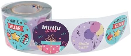 , hazır al hızlı al Mutlu Yıllar Etiketi 5cm Çapında 500 Adet, Doğum Günü, Yılbaşı Gecesi ve Nice Yaşlar İçin Kuşe Etiket