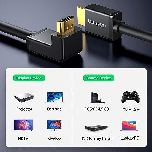 HDMI kablosu 4K 60 Hz, 90 derece HDMI kablosu Ultra HD Speed 18 Gbit/s Ethernet üzerinden, PS4 PS3 Xbox One NVIDIA Shield TV 4K UHD kablosu (2 m) ile uyumlu HDR 3D Arc destekler Ürün tipi: Elektrik kablosu Renk: Siyah HDMI 90 derece kablo, 2 Metre, Siyah