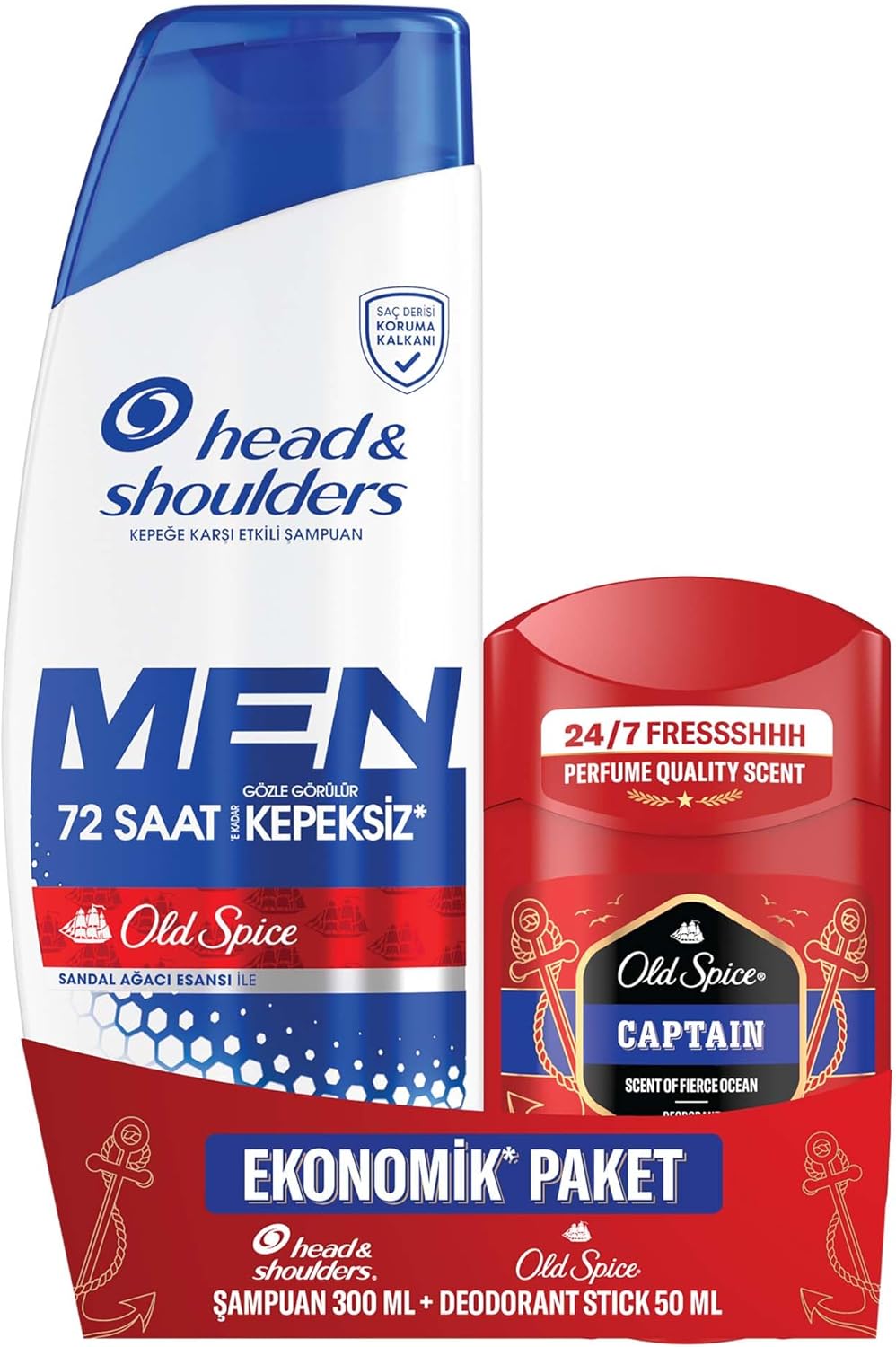 Erkekler için özel olarak geliştirilmiştir, günlük kullanım için uygundurs Head & Shoulders Men Ultra Kepek Karşıtı Şampuan 300 ml+ Captain Erkek Deodorant Stick 50 ml