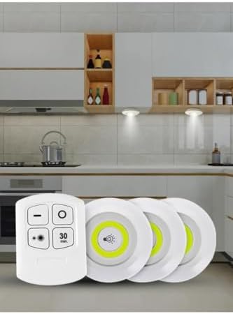 Hero 3’lü Kablosuz LED Spot Işık Seti – Uzaktan Kumandalı, Yapışkan Bantlı, Pilli, 3W COB LED, 150 Lümen, 2 Parlaklık Seviyesi, Zamanlayıcılı Dolap Tezgah Banyo Aydınlatmas
