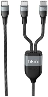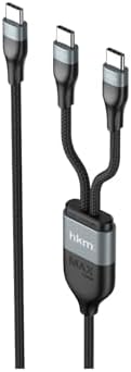 Type-C to Type-C+Type-C kablo 1.2m Uzunluk 100 Watt çıkış gücü Dayanıklı örgü kablo hkm tech DUO POWER 100W Çift Uçlu, Type-C to Type-C + Type-C Şarj Kablosu, Örgü Tasarım, 1.2 metre, Siyah