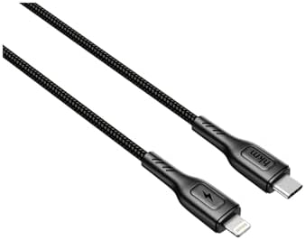 Type-C to Lightning Kablo 1m Uzunluk Şarj ve Data Aktarımı 30 Watt çıkış gücü Dayanıklı örgü kablo hkm tech KNIT 30W Hızlı Şarj Destekli, Type-C to Lightning Şarj ve Data Aktarım Kablosu, 1 metre, Siyah