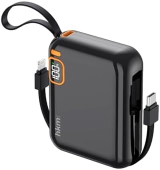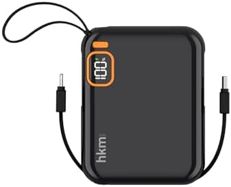 hkm tech POWER DUO 10.000 mAh 20W, PD 20W hızlı şarj destekli, Type-C ve Lightning Kablolu Powerbank, Siyah