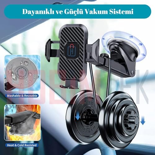 Yapıştırırken mutlaka alt kısımdaki vakumu kilitleyiniz. Cam ve Torpidoya (temiz olmak kaydıyla) yapıştırılabilir. Kopma Yapmaz. En üst kalite materyallerden üretilmiştir. Ürünün tasarımı sayesinde telefonunuzu tek elle kolayca yerleştirebilirsiniz. Ayarlanabilir teleskopik kol telefonunuzla uyumludur ve 360 derece dönebilir. Rahatlıkla yukarı-aşağı ve sola-sağa hareket ettirebilirsiniz. İki faktörlü yapışma sistemi silikon ve vakum özellikli ürünümüz araç camı ve torpido gibi tüm yüzeylere sorunsuz yapışır. Htt-53 Otomatik Klipsli Araba Telefon Tutucu Ayarlanabilir Cam Ve Torpido Için Yüksek Kalite Tutucu