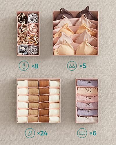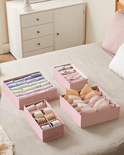 İç Giyim Saklama Kutuları, Çekmece Organizatörü, Dolap Organizeri, Katlanabilir, Sütyen, İç Çamaşırı, Çorap, Kravat İçin Katlanır Kutu, Kumaş Kutu 4'lü Set Pembe, Rus04Pk