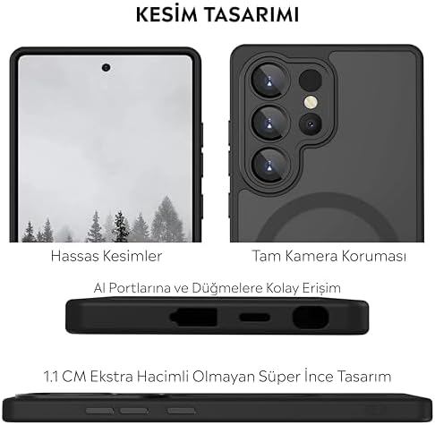 Hava Koruması köşeleri darbeleri emer, böylece telefonunuz şuna gerek kalmaz Ekran ve Kamera Koruması: yükseltilmiş ekran kenarları ve Kamera Koruyucu lens çerçevesi en çok sayıldığı yerlerde gelişmiş çizilme koruması sağlar Çizilmeye dayanıklı akrilik arka kısım, telefonunuzun orijinal görünümünü çarpıcı netlikle göstermenizi sağlar Her tarafta tam düşme koruması sağlamak için sıkı bir şekilde test edilmiştir için Kılıf Kamera Korumalı Mag-safe Şarj Özellikli Mat Şeffaf Renkli Kılıf (Siyah, Galaxy S25 Ultra)