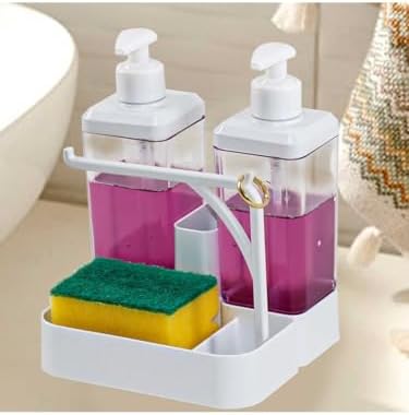 İKİLİ SIVI SABUNLUK VE SETİ – Yüzük Bez Askılı Sünger Hazneli 2X350 ml 2li Sıvı Sabunluk