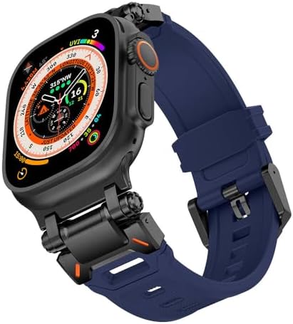 Akıllı Saat Kordon İle Uyumlu 42mm KRD-101 Titanyum Metal Başlıklı Silikon Kordon Siyah-Mavi İle Uyumlu 42mm KRD-101 Titanyum Metal Başlıklı Silikon Kordon Siyah-Mavi