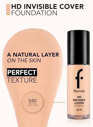 Invisible Cover HD Hafif Yapılı & Yarı Parlak Bitişli SPF30 Fondöten 040 LIGHT IVORY