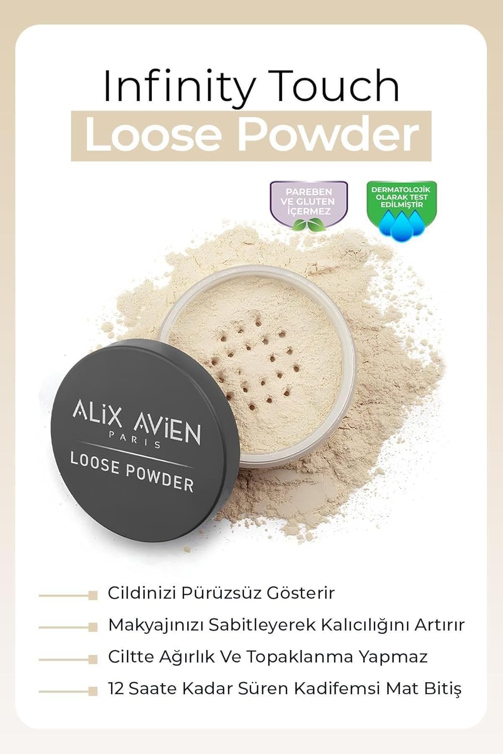 Farklı cilt tiplerine uygun geniş ürün yelpazesi İpeksi Toz Pudra – Sabitleyici Etki Mat Bitiş – Loose Powder 02 Nude Ivory İpeksi Toz Pudra – Sabitleyici Etki Mat Bitiş – Loose Powder 02 Nude Ivory