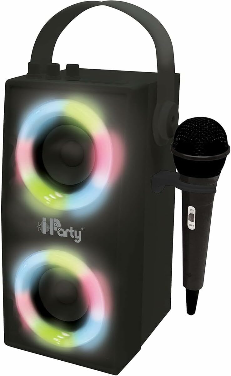 iPparty Hoparlör – Taşınabilir Bluetooth Mikrofon Hoparlörü, Karaoke, Işık Efektleri, Kablosuz, USB, SD Kart, Şarj Edilebilir Pil, Siyah, BTP180BKZ, Tek Boyut