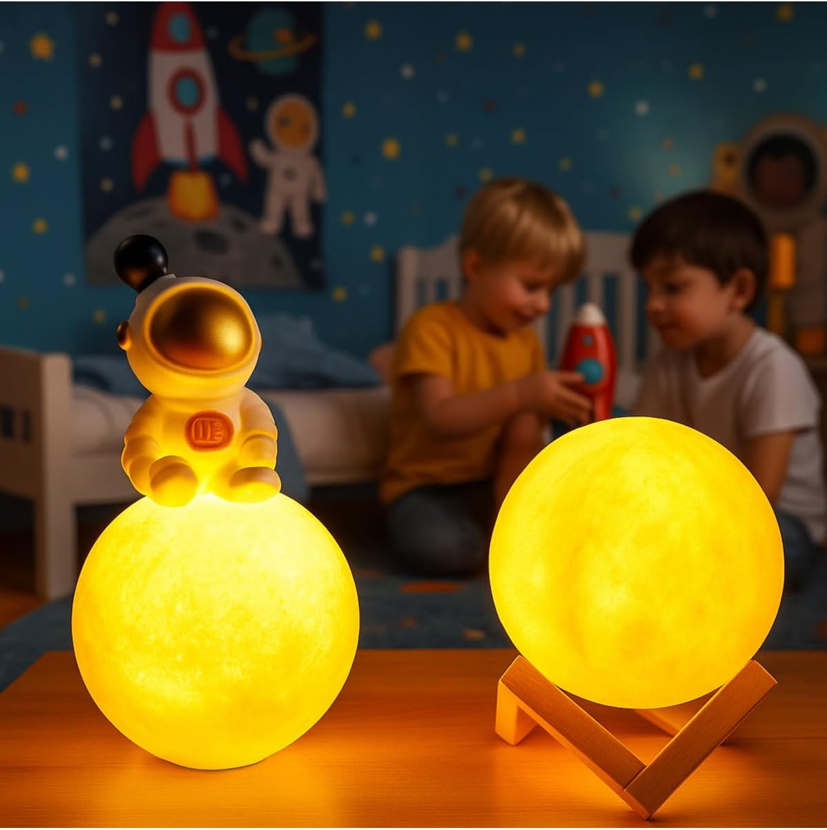 Nemli Bez İle Temizleyiniz Işık kasabası(25) Ay Üzerinde Oturan Astronot ve 3D Stantlı Küre Düşünen Astronot ve led ay gece lambası sarı Işık kasabası(25) Ay Üzerinde Oturan Astronot ve 3D Stantlı Küre Düşünen Astronot ve led ay gece lambası sarı