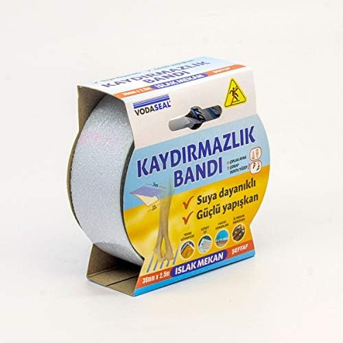 Suya dayanıklı, güçlü yapışkan Çıplak ayak ve çorap dostu yüzey Kaymaya elverişli ıslak zeminlerde kaydırmazlık sağlar. Tekne, yüzme havuzu kenarları gibi ıslak dış mekanlarda veya banyo, küvet, ev içi merdivenleri gibi iç mekanlarda kullanıma uygun Islak Mekan Kaydırmazlık Bandı, 36mmx2.5, Şeffaf