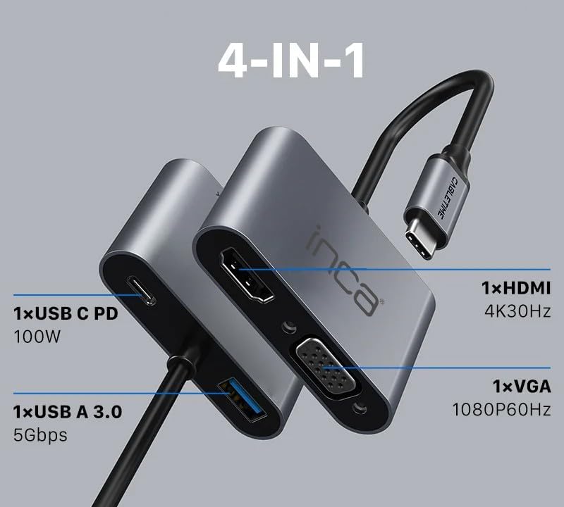 ITPC-06TXT 4'ü 1 Arada Type-C Hub Adaptör, HDMI 4K@30Hz, VGA 1080P@60Hz, USB 3.0, 100W PD Güç Dağıtımı, Alüminyum Kasa