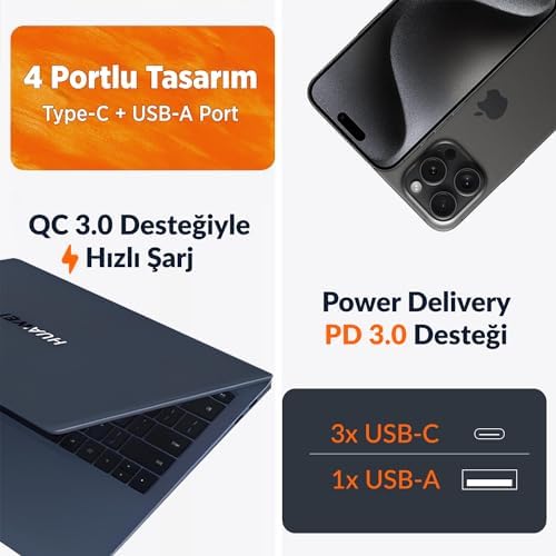 Juo G1003C1A 100W 4 Portlu GaN 3xUSB-C + 1xUSB-A portları ile aynı anda birden fazla cihazı hızlı ve güvenli bir şekilde şarj edebilirsiniz. Gelişmiş şarj protokolleri (PPS, PD3.0,QC4.0, AFC, vb.) ile uyumludur ve aşırı akım, aşırı sıcaklık, kısa devre gibi koruma protokolleri ile cihazlarınızı güvence altına alır. Juo G1003C1A 100W şarj cihazında Type-C1 ve Type-C2 portu tek başına kullanıldığında 100W, Type-C-3 portu 65W, USB-A portu tek başına kullanıldığında 18W, tüm portlar aktif kullanıldığında ise toplam 45W+30W+15Wgüç çıkışı sağlayacaktır. GaN teknolojisi ile şarja taktığınız cihazlar yüksek hızlarda şarj olurken ısınma probleminin de önüne geçilmektedir. Juo G1003C1A 100WGaN PD şarj cihazını, iPad,,, gibi ürünlerin yanında PPS destekli cihazlarla da güvenli bir şekilde kullanabilirsiniz. Kompakt boyutu, 218 gram ağırlığı ile her zaman yanınızda taşıyabilirsiniz. Dayanıklı ve alev almaz plastik kasası düşmelere, darbelere daha dirençli hale getirerek cihazınızı uzun süreler kullanmanızı sağlamaktadır. PPS Nedir? Programmable Power (PPS) Programlanabilir Güç Kaynağı USB Type-C üzerinden hızlı şarj imkanı sunmaktadır. Dinamik olarak voltajı ve akımı ayarlayan teknoloji cihazın durumuna bağlı olarak maksimum gücü vermeye çalışıyor. Ayrıca şarj esnasında kayıpları da en aza indiriyor ve ısınmayı engelliyor. 10 saniyede bir akım üzerinde dinamik optimizasyon yapabiliyor. Bu sayede daha verimli ve daha hızlı şarj etmesi hedeflenmektedir. Gelişmiş GaN Teknolojisi Nedir ? GaN (Galyum nitrid), şarj aletleri ve güç adaptörlerinde giderek daha fazla kullanılan yenilikçi bir yarı iletken kristal malzemedir. Geleneksel silikon bazlı şarj cihazlarına göre yüksek performans sergilemektedir. Mükemmel iletkenliğinin yanında yüksek sıcaklıklara karşı dirençlidir. GaN teknolojisine sahip şarj cihazlarının yüksek frekansları nedeniyle, daha az alan gerektirir. GaN teknolojisinden güç alan Juo 100W G1003C1A şarj adaptörü silikon bazlı şarj cihazlarına kıyasla minimal yapıda daha yüksek Watt değerlerine sahiptir. Evrensel Uyumluluk Juo G1003C1A 100W GaN Şarj Aleti & iPad & & & Notebook & PPS Uyumlu PD QC4.0 Type-C Hızlı Şarj Cihazı desteklediği protokoller sayesinde bir çok cihaz ile uyumluluk sağlamaktadır. 100W çıkış gücü ile uyumlu tüm telefon, tablet, notebook, macbook gibi cihazlarınızda güvenle kullanabilirsiniz. Ultra Kompakt Tasarım Juo 100W USB-C Güç Adaptörü küçük boyutu ve sadece 218 gram ağırlığı ile çantanızda rahatlıkla taşıyabilirsiniz. Küçük boyutları dar alanlarda bile rahatlıkla kullanmanıza kolaylık sağlamaktadır. Günlük yaşamınızda, işte, seyahatte veya spor aktivitelerinde rahatlıkla yanınızda taşıyabilir, kullanım kolaylığının keyfini sürebilirsiniz. Multi Güvenlik Teknolojisi Juo G1003C1A 100W USB-C şarj aleti entegre akıllı devre tasarımı ile aşırı akım, sıcaklık, kısa devre, düşük –yüksek voltajlara karşı koruma sağlamaktadır. Cihazlarınızı şarj esnasında kapsamlı koruma sağlayarak güven altında tutar. Alev geciktirici plastik kasası düşmelere, darbelere karşı dayanıklıdır. Multi Protokol Juo 100W USB-C şarj cihazı gücünü GaN teknolojisinden almaktadır. GaN teknolojisi sayesinde PD3.0, Apple5V2.4A, QC4.0, QC3.0, AFC, FCP, SCP, DCP, PPS dahil olmak üzere tam hızlı şarj protokollerine sahiptir. Juo 100W 4 Portlu USB-C + USB-A GaN Şarj Aleti & & Notebook Uyumlu PD Type-C Hızlı Şarj Cihazı Beyaz