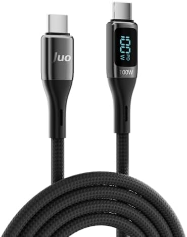Juo 100W 5A QC4.0 Dijital Led Ekranlı E-Mark Çipli USB PD Type-C Hızlı Şarj ve Data Kablosu 2 Metre