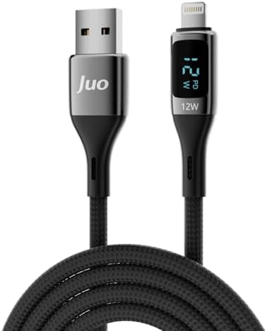 Juo 12W Dijital Led Ekranlı USB-A to Lightning iPad Örgülü Hızlı Şarj ve Data Kablosu 1 Metre