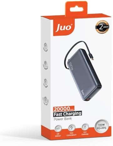 Juo 20000mAh 130W LED Ekranlı USB-A + Type-C Kablolu Powerbank Taşınabilir Hızlı Şarj Cihazı