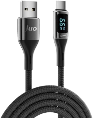 Juo 66W Dijital Led Ekranlı Örgülü USB-A to USB Type-C Hızlı Şarj ve Data Kablosu 2 Metre