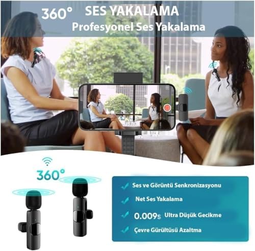 K9-D2 TYPE-C Lightning Dönüştürücülü Kablosuz Çiftli Yaka Mikrofonu