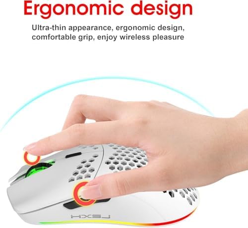 Kablosuz Petek Tasarım Şarjlı Gaming Mouse – RGB Aydınlatmalı 3200 DPI Ultra Hafif Beyaz