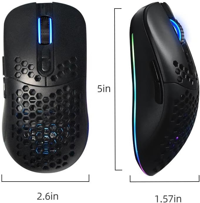 Kablosuz Petek Tasarım Şarjlı Gaming Mouse – RGB Aydınlatmalı 3200 DPI Ultra Hafif Siyah