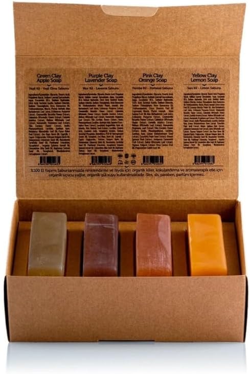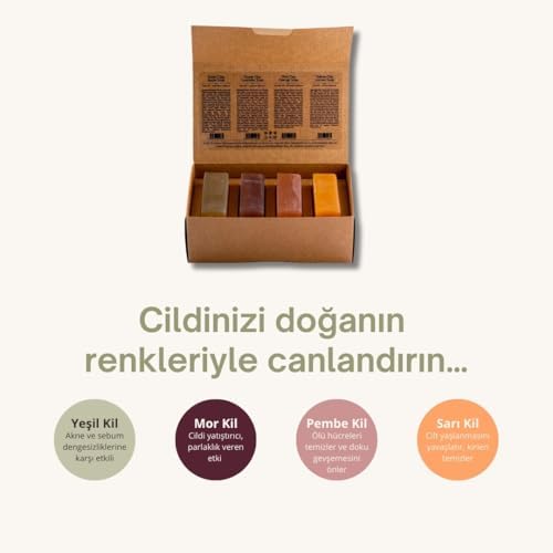 Kadın Kil Sabunu Seti 4×120 gr – Yağlı, Hassas ve Olgun Ciltler İçin Doğal Kil Sabunları | Yüz, Vücut ve Saç Bakımı