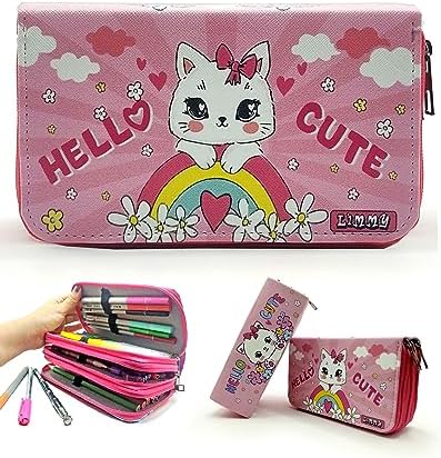 Kalem Kutusu Kedi Desenli Organizer Kalemkutu Vegan Deri Üç Bölmeli Kalemlik
